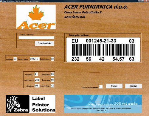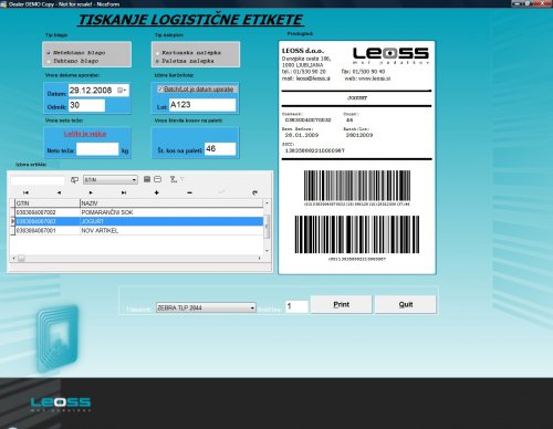 Prilago?eno programsko rje?enje za tiskanje naljepnica sadr?i sve potrebno za njihovo oblikovanje, ispis i kontrolu nad svim procesima. To je pouzdano (kontroliran ispis naljepnica), nezahtjevno (pojmljivo korisni?ko su?elje) i pravo rje?enje za jednostavan rad. Po potrebi vam, pokraj programskog dijela, mo?emo preporu?iti i dostaviti i najprimjerniji termi?ki printer, odgovaraju?e naljepnice i folije za tiskanje.