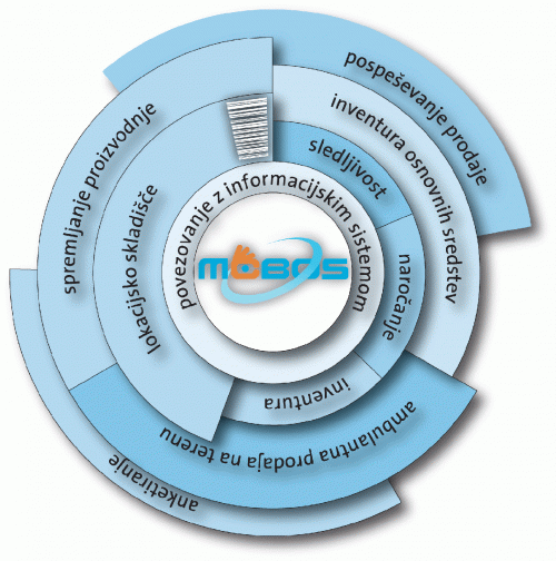 MOBOS je sistem orodij, ki v najve?ji mo?ni meri upo?tevajo specifi?ne zahteve posameznih uporabnikov s ciljem omogo?iti usklajeno delovanje oddelkov nabave, proizvodnje in prodaje. Z MOBOS-om smo kos ?asovno-kriti?nim operacijam. MOBOS je izvedba re?itev na klju?. Je all-in-one: skladi??e, pospe?evanje prodaje, naro?anje, storitvena dejavnost, inventure (tudi osnovnih sredstev) ... Je mobilna prodaja v dlani s statistiko naro?anja. MOBOS je namenjen vsem, ki ?elijo na terenu delati dokumente na na?in kot bi to po?eli v mati?nem skladi??u in na terenu imeti vse potrebne podatke za popolno oskrbo stranke. Osnova delovanja so robustni ro?ni ra?unalniki (v nadaljevanju terminali) z MS Windows Mobile operacijskim sistemom z mo?nostjo zajema ?rtnih kod ali slik ter opcijsko povezavo GSM/GPRS/UMTS/EDGE.