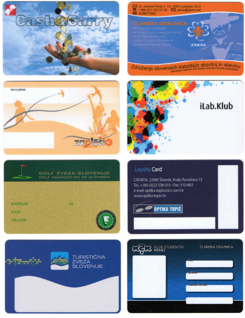?lanske kartice, Mercator Cash&Carry, iLab, Golf zveza, TZS, Optika Topi?, Skavti, Zaplesi.si, Klub ?tudentov Kranj, ?lanske kartice za dru?tva