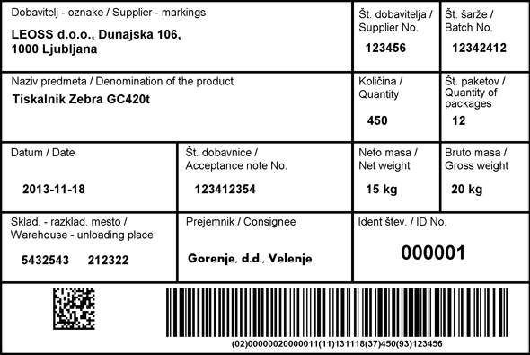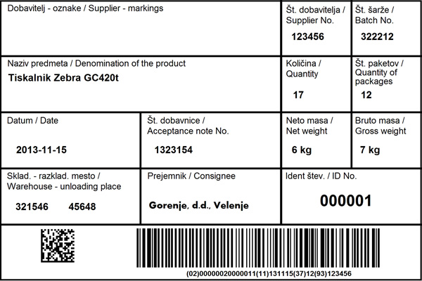 Logisti?na etiketa za Gorenje po standardu GOS610