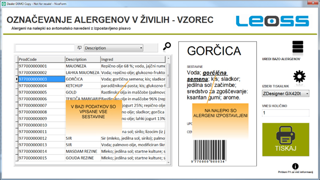 Re?itev za ozna?evanje alergenov komplet