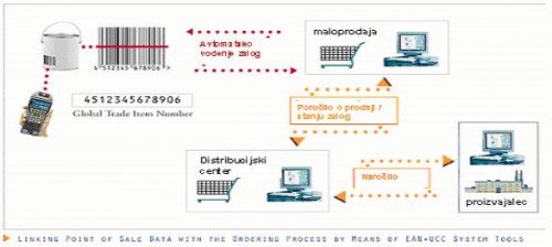 Na zgornji sliki si lahko ogledate upravljanje toka povpra?evanja (povezovanje podatkov s prodajnega mesta in procesa naro?anja s pomo?jo orodij sistema EAN.UCC. Vir: EAN Slovenija