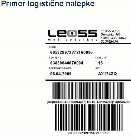 Na zgornji sliki si lahko ogledate primer pravilo izdelane logisti?ne nalepke po priporo?ilih EAN.UCC.