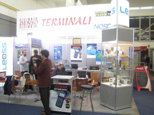 na?ih dobaviteljev (Zebra, Denso, Metrologic, Socket, NordicID, Europlus, Nfive,?), so popestrile hostese in Atlasov terminal za rezervacijo po?itnic. Strokovno podporo pa je poleg treh LEOSS-ovih sodelavcev nudil tudi predstavnik NordicId, g. Emanuelle Moulin.