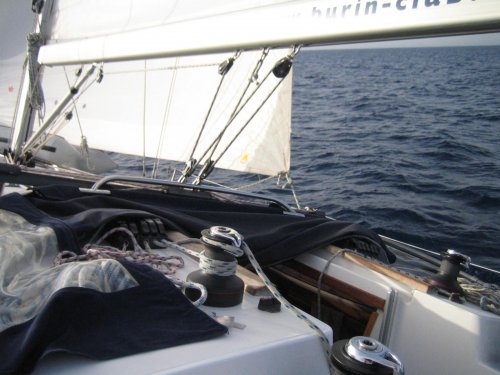 Ve? o tem. Prvi vetrovi so bili pre?ibki, da bi nas pripeljali dale?, zato smo se skozi Vgradski kanal peljali na motor. V Murterskem morju so nas pri?akali delfini. Bili so trije ali celo ?tirje, oddaljeni najve? 100 metrov od nas. Zve?er smo prispeli do prvega postanka - otoka Kaprije.