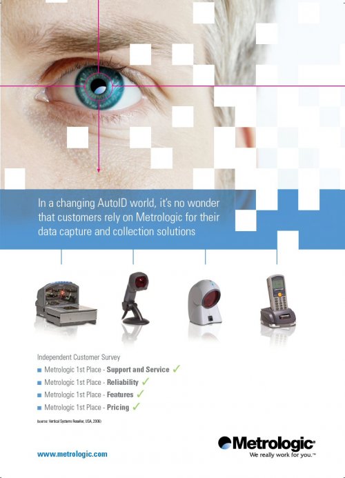 Po mnenju revije VSR je ?Metrologic zanesljivi zmagovalec v razredu POS ?italnikov.? Ko gre za podro?je trgovine, VSR dodaja: ?vsi uvr??eni dokazujejo, da sodijo med elitno skupino pionirjev na podro?ju zajema podatkov v obliki ?rtnih kod.?