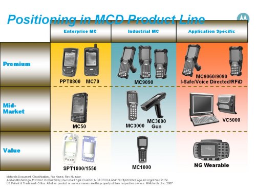 Motorola je predstavila svoje naprave za zajem podatkov v ?rtnih kodah; ro?ne ?italnike ter bolj ali manj robustne ro?ne ra?unalnike. V okviru slednjih so prikazali sposobnosti nove Motorole MC35. Ta je cenovno ugodna razli?ica dokaj robustnega dlan?nika (deklarirana na 150 padcev na podlago preproga/itison z vi?ine 1 metra). Za vse uporabnike, ki ne potrebujejo ?italnika ?rtne kode, predstavlja MC35 odli?no alternativo prav zaradi svoje robustnosti in cene. Kot primer uporabe za MC35 lahko navedemo povezavo s specializiranimi napravami za od?itavanje raznih meritev, ki omogo?ajo priklop preko Bluetootha (GPRS modul za geografske popise). Kot tak je dobra alternativa tudi za uporabo v bolni?nicah, kjer je treba prikazovati podatke o pacientu in svetovati na?ine zdravljenja. Podobnih primerov je v svetu ?e veliko ve?. Mobilni operaterji po besedah predstavnikov Motorole v nekaterih dr?avah ?e ponujajo MC35 s SIM kartico zgolj proti podpisu nekaj pogodb za 4- ali 5-letno naro?nino za poslovne uporabnike; torej brez dodatnih stro?kov. Sicer se cene MC35 gibljejo med 650 in 800 USD odvisno od izvedbe. MC35 je pripravljen za delovanje v sistemu, v katerem predstavlja mobilni telefon pla?ilno sredstvo (?NFC ready? ? near fiel communication). Vse o MC35 tukaj.