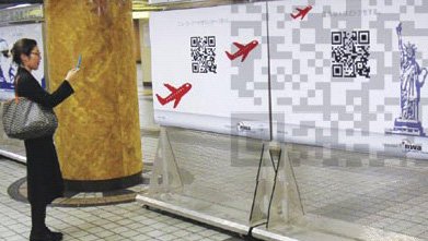 (ve?). Zato so tam (npr. na tokijski podzemni ?eleznici) nekateri podatki zapisani tudi v obliki QR kode, kar tujcem slu?i kot pomo? pri orientaciji, saj zajem teh kod mimoido?im v angle?kem jeziku sporo?a kam iti, kaj tam videti ipd. ?e pogosteje se QR kode poslu?ujejo ogla?evalci, katerih oglasi imajo poleg japonskih pismenk besedilo skrito tudi v QR kode. Nekateri proizvajalci svoje potro?nike nagovarjajo izklju?no v obliki ?rtnih kod, ki so natisnjene poleg vodilnega mota oglasa, ?ivljenjskega sloga, ki ga prodajajo itd.
