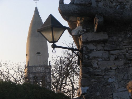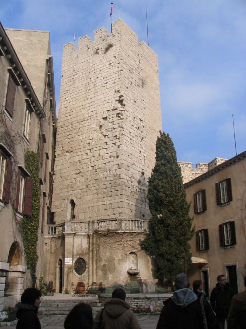Sredi gradu stoji stolp, s katerega pogled na vzhod se?e do Pirana, pred njim do ?e enega obmorskega gradu - Miramar (Castello di Miramare)