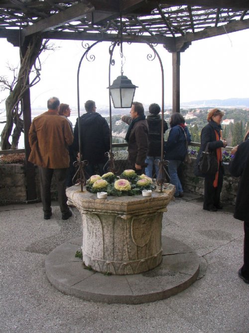 (ve?). Pred obiskom stolpa smo se po 99 stopnicah spustili v bunker (slika 12), iz katerega se Devinski grad vidi kot mogo?na rumeno obarvana trdnjava na pe?ini (slika 4). Pogled s stolpa proti zahodu se kon?a ob izlivu reke So?e (Isonzo) ter industrijsko orientiranem Tr?i?u (Monfalcone). Prijazni lokalni vodi? nam je v brezhibni sloven??ini nizal imena in zgodbe izjemnih ljudi, ki so se skozi zgodovino te razsvetljene utrdbe izmenjavali na privatnem posestvu dru?ine Thurn und Taxis, ki je imela ? zanimivo - monopol nad po?tno slu?bo v Evropi do 20. stoletja oz. zadnjih 450 let. Grad nas zaradi zgodb, predmetov in ljudi, ki so ga obiskovali (Siegmund Freud, Rainer M. Rielke, Mark Twain, Sisi, dru?ina Gonzaga, direktni potomci Napoleona I., Johan Strauss, Franz Liszt (klavir na sliki 11) idr.), prevzame v trenutku ter sprosti domi?ljiji pot vsakomur, ki se poskusi v?iveti v stare ?ase. Vodi? nam je pripovedoval, kako so iz gulaga re?evali carja Aleksandra, kako so s finan?no injekcijo Siegmunda Freuda le s te?avo izvlekli iz prime?a nacistov ter kako se je ta nato oddol?il svojim re?iteljem. Devinski grad je znan tudi po zgodbi o beli dami, za katero legenda pravi, da jo je eden od vladarjev pahnil s pe?ine pod vrtovi v morje, kjer je okamenela in se ?e danes v jasnih no?eh prikazuje na gladini. Legendo opeva pesem Lepa Vida