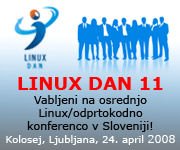 Linux dan 11 bo potekal 24. aprila 2008 v ljubljanskem Koloseju v BTC-ju med 8.30 in 17. uro. Dan zatem sledi enodnevna delavnica Xen, MySQL in PostgreSQL, to je 25. aprila 2008 v prostorih dru?be Housing d.o.o. na Vodovodni cesti 100 v Ljubljani.