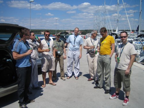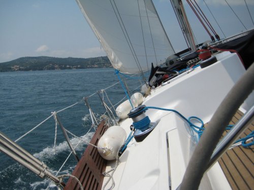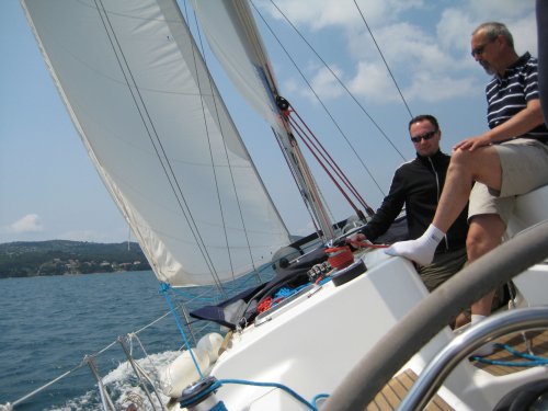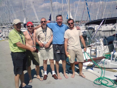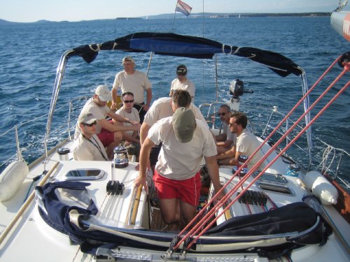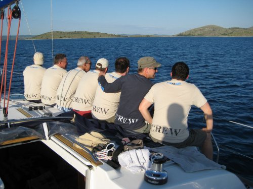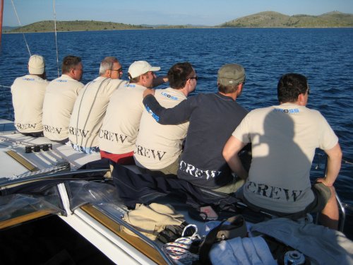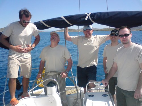 Ko smo obujali spomine na ?tiri dosedanja skupna izplutja po Jadranskem morju, si nismo upali predstavljali, da bo tokratna, najbolj mno?i?na odprava, najuspe?nej?a. V ve? pogledih. Ne le po ?tevilu obiskanih obmorskih mest in vasi ter otokov, po poku?ini naj?tevil?nej?ih sort doma?ega vina, po ?tevilu odigranih partij balinanja in odbojke na mivki, ampak tudi po najve? opa?enih delfinih, najve? prehojenih oto?kih brezpotij (z vzponi na nekatere vrhove), izredno visoko stopnjo sprostitve in zabave. Da pa ne bo vse tako usmerjeno v pozitivne prese?ke, se lahko pohvalimo tudi z dvema nespodbudnima rezultatoma, in sicer z rekordno majhno minuta?o, ko gre za dejansko, klasi?no jadranje (vetra do zadnjega dne prakti?no ni bilo prav ni?) in posledi?no dokaj majhnim ?tevilom preplutih morskih milj. Vseeno ohranimo dobro vzdu?je. Namre? ko zavlada bonaca, si obujemo gojzarje in se povzpnemo do najvi?jih razglednih to?k dale? naokoli. Pletemo prijateljske vezi in se spodbujamo pri svojem po?etju v slu?bi. Kljub temu so debate tako spro??ene, da vlada v ?asu jadranja popolni odklop od dogajanja doma.