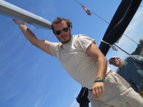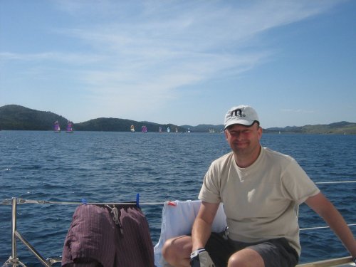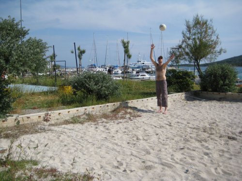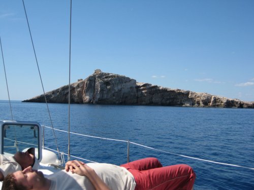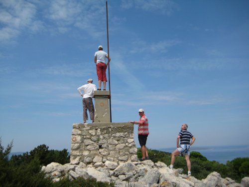 Jutranja kava in sokovi so z zgodbami botrovali k veselju posadke. Nad na?o mizo so letale lastovke in se bohotile ro?e tipa oleander. Poslu?ali smo zgodbo o ma?kah, ki se potikajo okrog LEOSS-a, o kosih, ki jih te ma?ke neuspe?no lovijo ter o ma?ku, ki se je dolgo ?asa grel na avtomobilu v kapitanovi gara?i. Ta je morala zato ostajati odprta, da ne bi ma?ku prikraj?ali svobode gibanja. Zgodbam je sledil klasi?en zajtrk, ki je pomenil predhodnico izplutja v smeri Molata do otoka Ista (ve?). Ob privezovanju na otoku Istu nas ni pri?el obiskat nih?e iz lu?ke kapetanije. To je bilo prvi?, da nih?e od nas ni takoj zahteval dokumentov in denarja. In tako je tudi ostalo. Obiskal nas je le prijazen mo?, povedal ?alo o Bledu, preveril, ?e je posadka trezna in ?el naprej. Tu vladata mir in ti?ina. Delovni ?as se pri?ne, ko se kon?a prosti ?as, kar v?asih pomeni, da se sploh ne pri?ne. To je Dalmacija v pravem pomenu besede. Ko smo se privezali, je ura bila okrog 11. Polovica posadke jo je v lovu za razgledi zopet mahnila na najvi?ji vrh otoka, na 127 m vzpetino, na vrhu katere stoji cerkev. Razgled je tu odli?en. Vidi se od Ilovika na severu do konca Dolgega otoka na jugu. Na vzhodu je lepo viden Pag, na zahodu pa samo horizont z lomljenjem morja. Pri spu??anju s hriba smo naleteli na go?a, ovce, ma?ke in gigantsko kobilico. Ob vrnitvi z vrha, igranje odbojke na mivki. Sprva 3 na 3. Janko, Miha in Igor s 3 proti 1 v zmagah nadvladali Matja?a, Francija in Bernarda. Ko se je tekma raz?irila na 8 igralcev, je prva trojka ob pomo?i dodatnega igralca Ga?perja z 2 proti 1 premagali drugo trojko, kljub pomo?i Kre?ota, ki je mnogo to?k re?il z nogami v slogu izku?enega nogometa?a oz. igralca brazliske odbojke na mivki (z nogo). Pogosto smo se napa?no metali, smer ?oge pa je krojil tudi rahel veter. Pohvaliti velja prav vse igralce obeh ekip, ?e posebej tudi pora?ence, ki so bili povpre?no 15 let starej?i od zmagovalcev. Kako je bilo na internem dvoboju v odbojki na mivki lani, ko je ta potekal na otoku Silba (ve?)? Po odbojki tu?iranje v lepo urejenih tu?ih ob pomolu, kosilo. Pe?ena svinjska ribica s ?pikanimi klobasami ter paradi?nik v solati. 20% odprave se je dr?alo brezmesnih jedi, ob katerih so bile na kro?niku ?e sojine hrenovke. Na Istu za?uda odprta tudi trgovina, v kateri smo nakupili nekaj najnujnej?ih zadev: jabolka, pivo. Odhod jadrnice pozno popoldan.