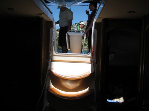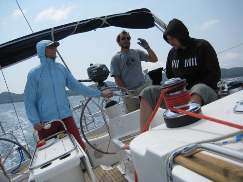 Dol?ni smo podati ?e eno do pravil jadranja, s katerim, ?e se ga dr?imo, prepre?imo slabost na barki: 1. med jadranjem se ?im manj zadr?ujmo v podpalubju in 2. vedno glejmo v smeri plovbe. Potem, ko nam je seaman recruit podal omenjeni dve pravili, je bilo ugotovljeno, da zmanj?ana jakost vetra in sonca ob kozar?ku rujnega pelje v pre?erno vzdu?je. ?Neki se prihvatili dela, a neki boce. I svima je dobro!?