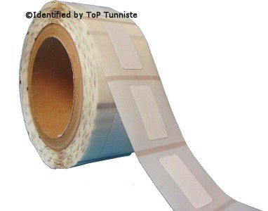 RFID nalepke, STD topcoated papir, dim. 18 x 36 mm z vgrajenim RFID tagom dim. 14 x 31 mm, tip: Philips Semiconductor I* Code 13.56 MHz, na kolutu 50 kos