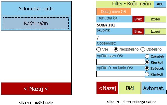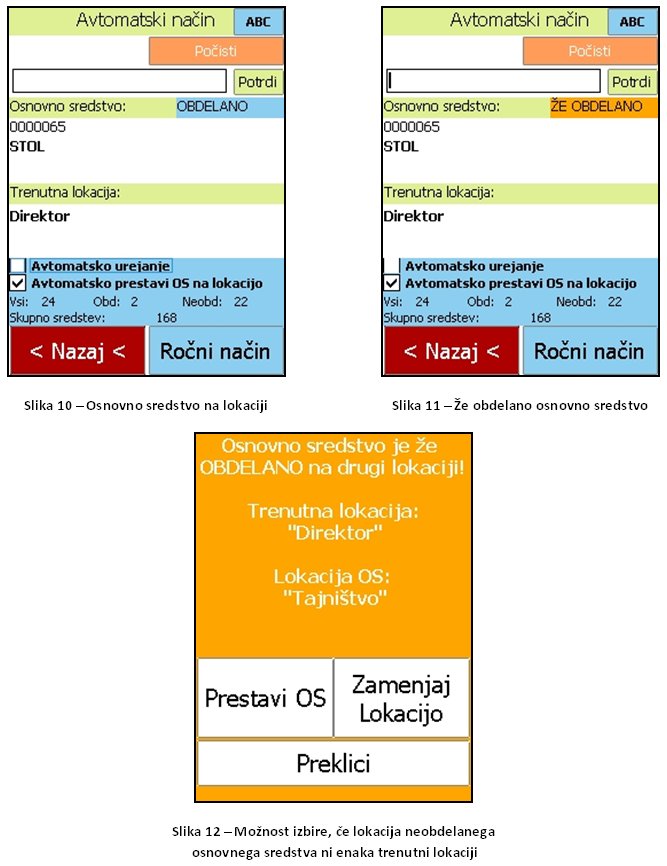 Posnetki zaslonov nadgrajenega terminalskega dela re?itve inventura osnovnih sredstev