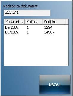 vnos podatkov na ro?nem terminalu (koda artikla, koli?ina, serijska ?tevilka, rok uporabe),