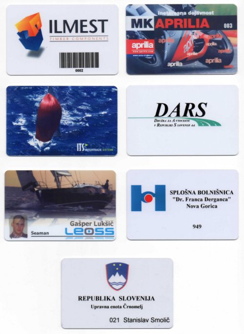Kadar potrebujemo barvne kartice, katerih dizajn ne sodi med najzahtevnej?e, lahko te najhitreje natisnemo s tiskalniki ID kartic Zebra. Vzorci tovrstnih kartic na sliki zgoraj.