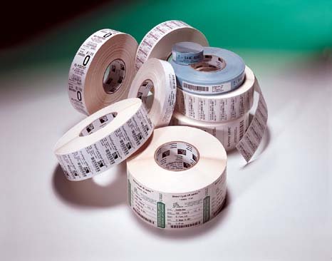 Obstajata dve vrsti papirnih nalepk in obe sta na voljo v obliki kolutov razli?nih dimenzij. Prva razli?ica papirnih nalepk omogo?a obstojnej?i tisk preko folije, ker je izdelana s standardnim papirjem