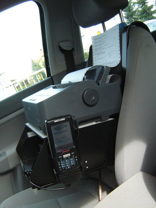 terenska prodaja (tudi ambulantna prodaja). Nosilec je sestavljen iz dveh kljuk, s katerima ga pritrdimo na sovoznikov ali sredinski sede?. Pod tiskalnikom je prostor za papir in razsmernik