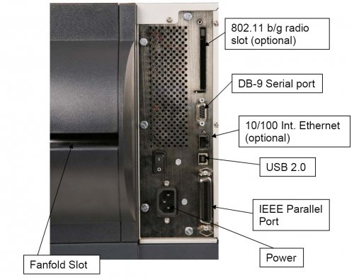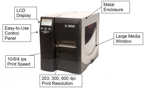 no?, odljepljiva? sa mogu?no??u provla?enja upotrebljive nose?e trake, premota?, prikaziva? sata, nosilac folije, koji omogo?uje kori?tenje print traka sa tintom na unutarnjoj strani (ZM400), pripremljenost za RFID, adapter za povezivanje preko RS-422/RS-485 serijskega piklju?ka.